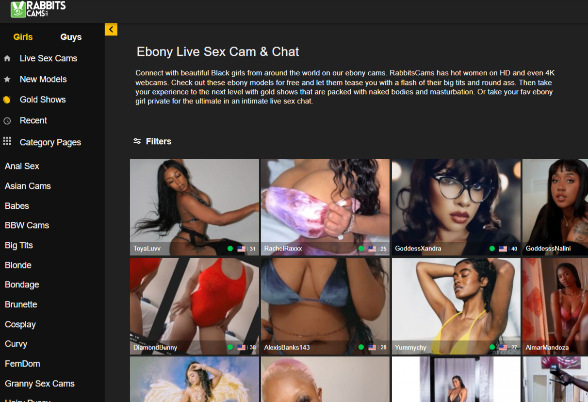 Descubre las chicas de cámara de ébano más calientes en RabbitsCams, donde podrás reírte y charlar en vivo con algunas de las modelos negras más sexys que existen. Desde reinas con curvas hasta sirenas esbeltas, RabbitsCams presenta un buffet de las mejores artistas de ébano listas para dejarte boquiabierto (y más) con sesiones privadas interactivas. ¿Por qué conformarte con el viejo y aburrido porno de ébano cuando puedes tener una cita virtual en tiempo real con estas deslumbrantes divas? Los modelos de cámaras de ébano mejor valorados ¿Listo para conocer las joyas de la corona del mundo de las cámaras de ébano? ¡Vamos a sumergirnos! Primero, PerkyBabe, una bisexual de 35 añ...